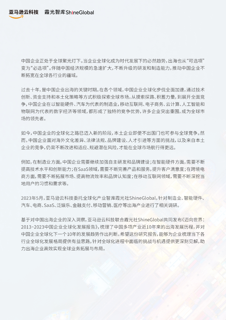 亚马逊云科技&霞光智库:迈向世界:2013~2023中国企业全球化发展报告.pdf
