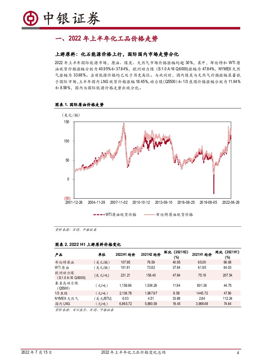 中银证券:2022年上半年化工品价格变化总结:能化及新能源上游领涨,下游部分精细化学品承压.pdf