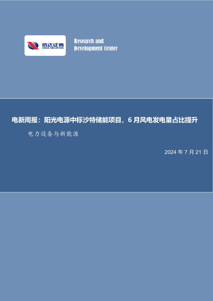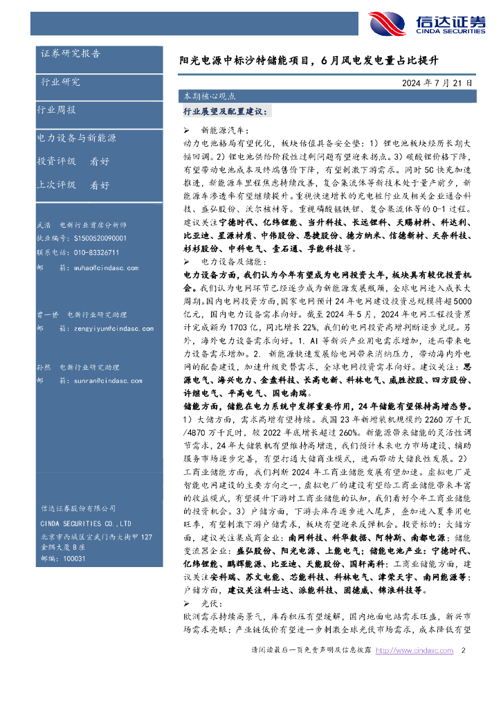 信达证券:电力设备与新能源:电新周报:阳光电源中标沙特储能项目,6月风电发电量占比提升.pdf