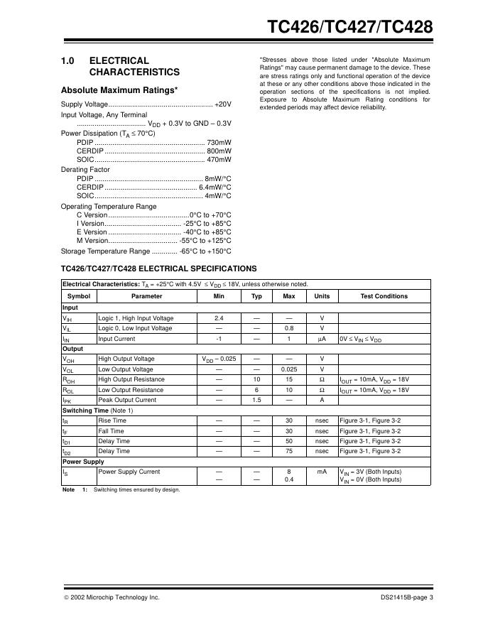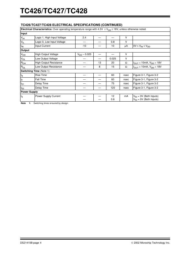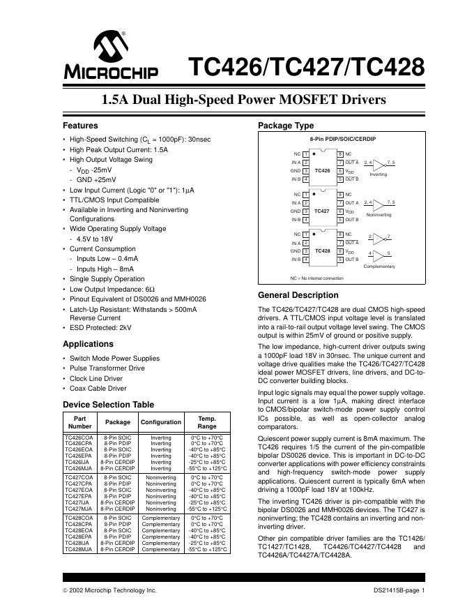 MICROCHIP - TC426/TC427/TC428 1.5A Dual High-Speed Power MOSFET Drivers 数据手册.pdf