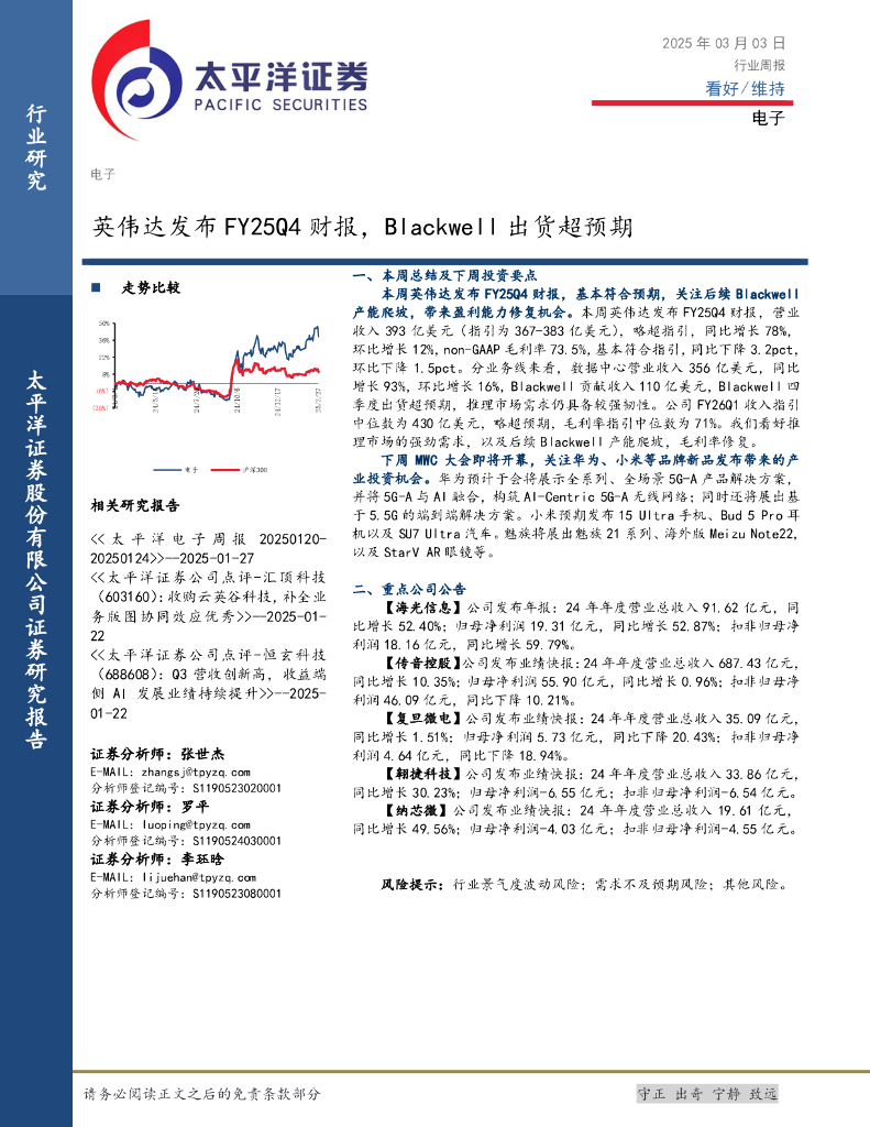 太平洋证券:电子行业周报:英伟达发布FY25Q4财报,Blackwell出货超预期.pdf