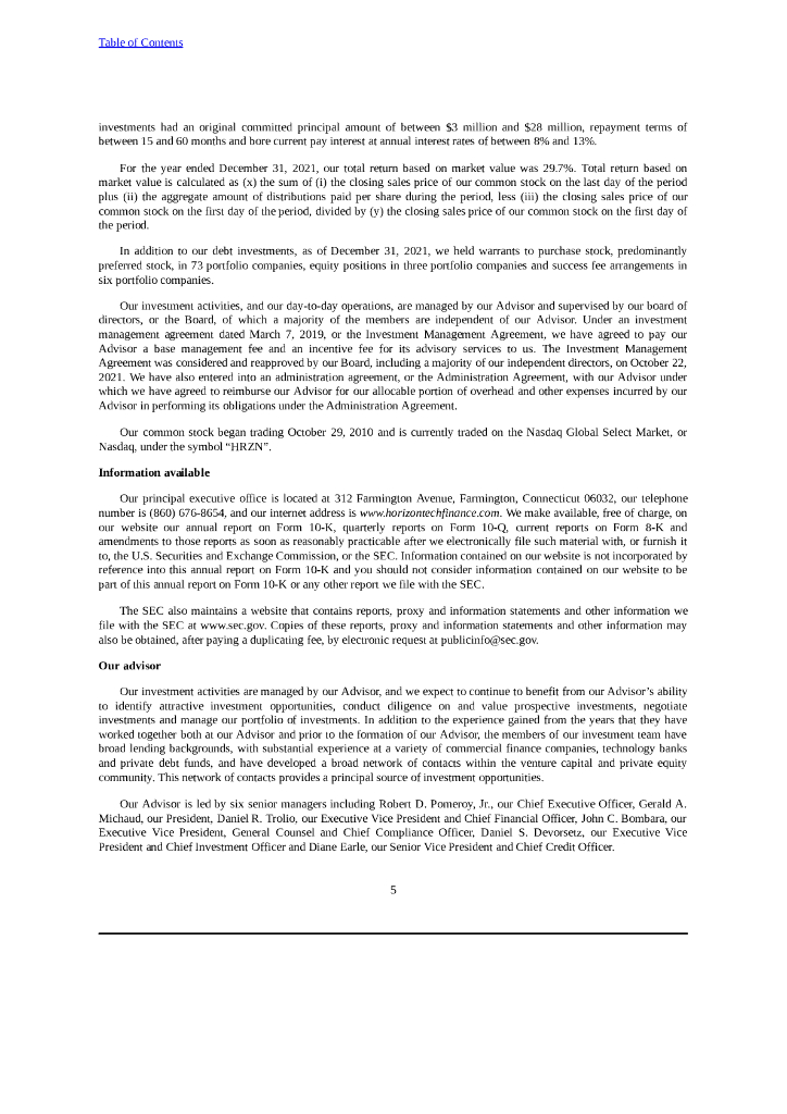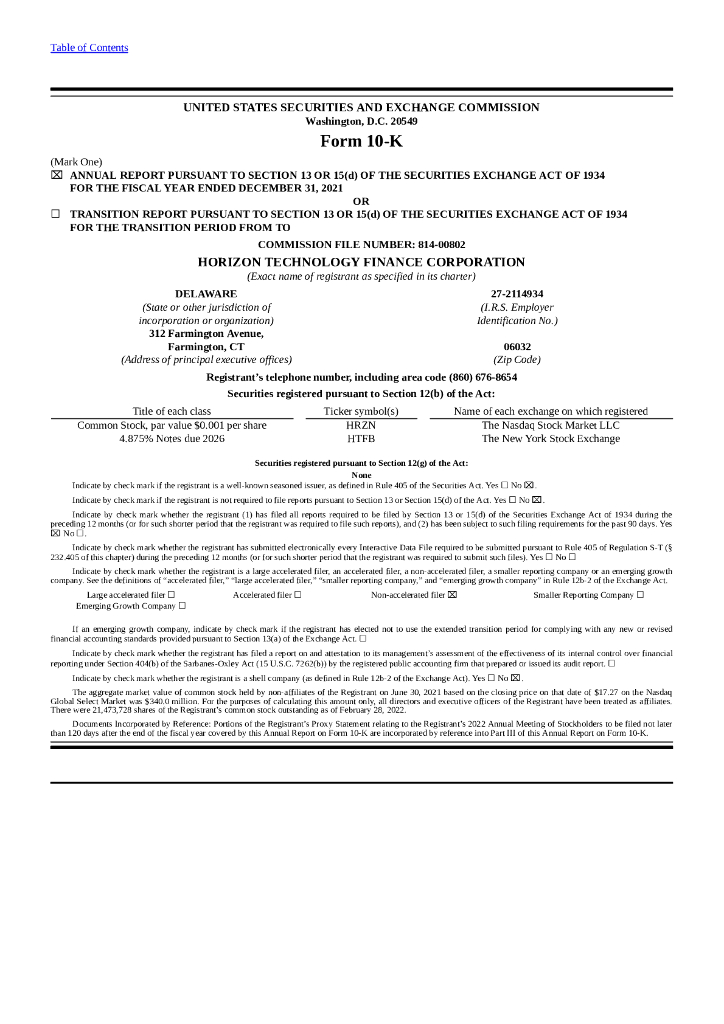 Horizon Technology Finance Corporation(HRZN)2021财年年度报告(英文版).pdf