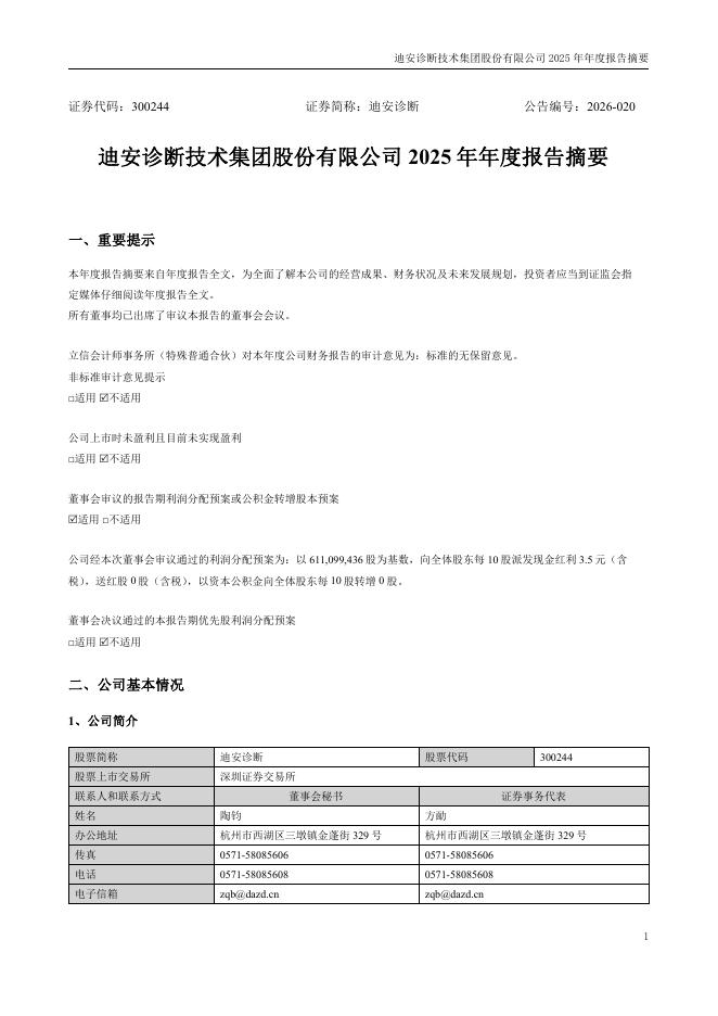300244-迪安诊断:2025年年度报告摘要.pdf