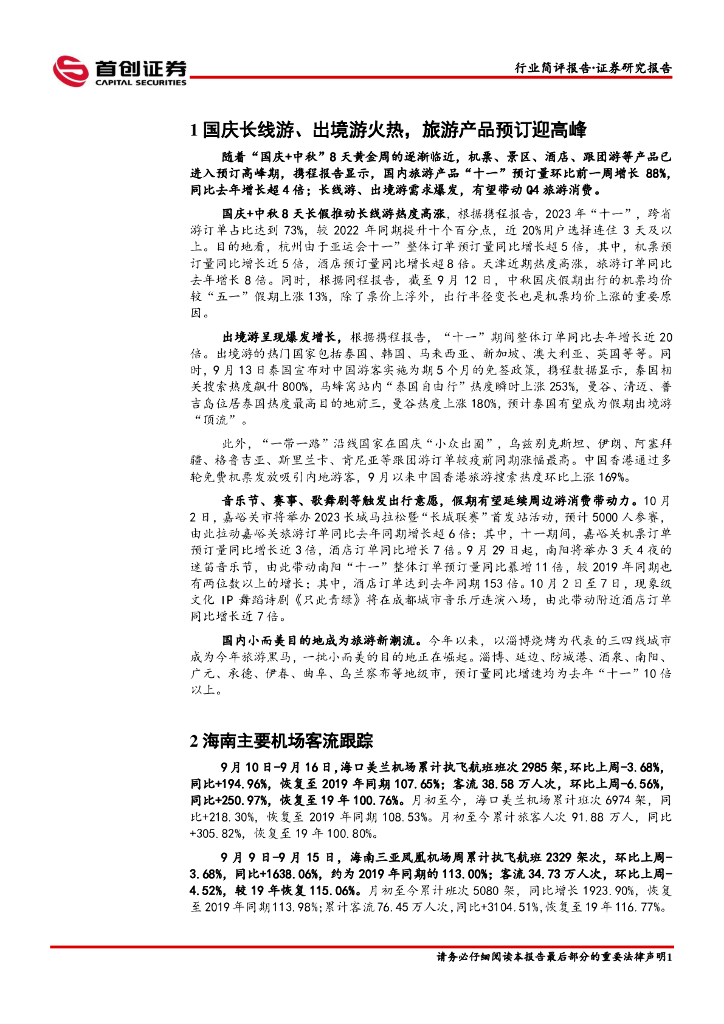 首创证券:社服:国庆旅游产品预订迎高峰,长假出行热度超疫前.pdf
