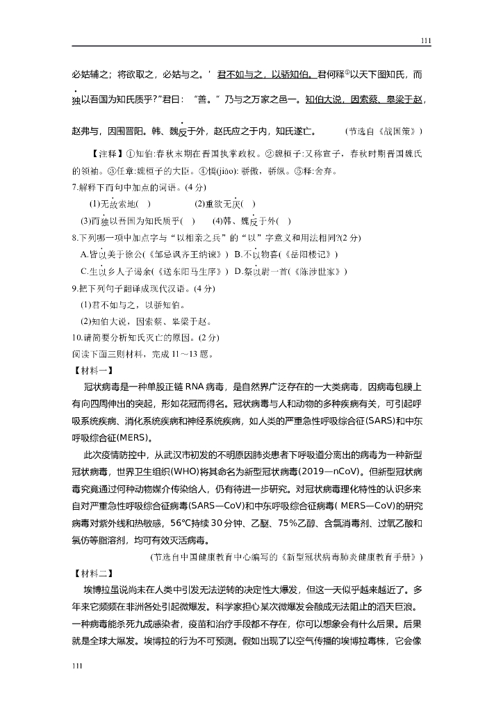 太仓市2020 初三语文一模附答案.doc
