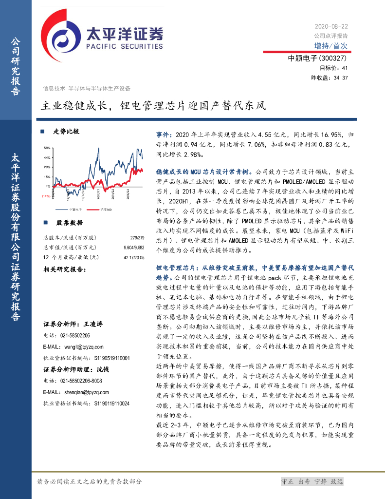 太平洋证券:中颖电子(300327)-主业稳健成长,锂电管理芯片迎国产替代东风.pdf