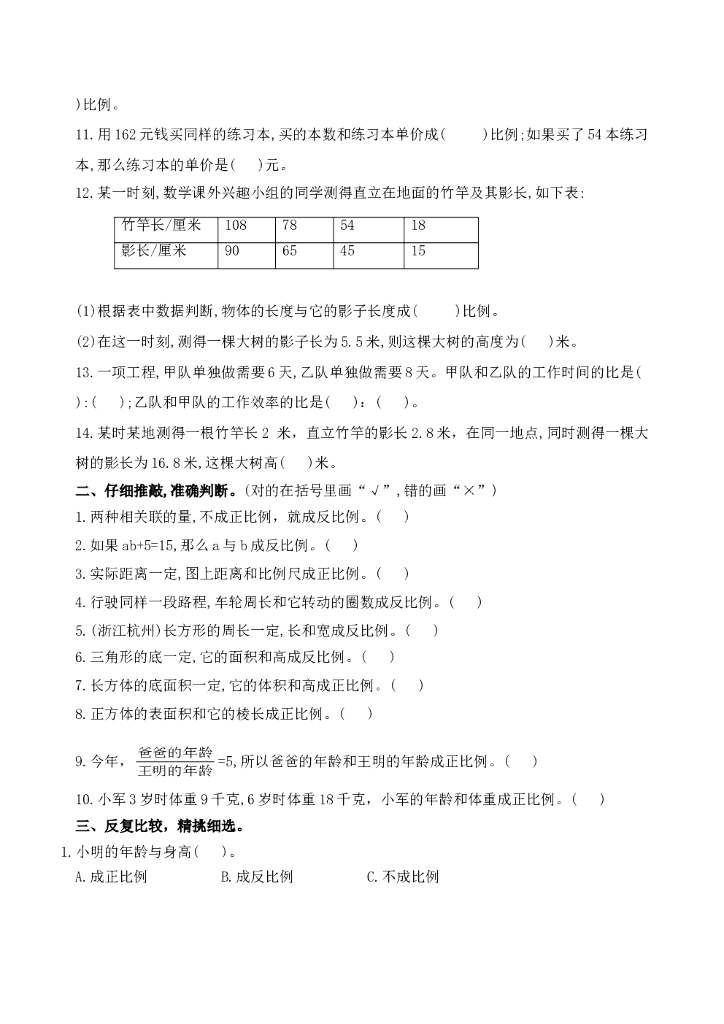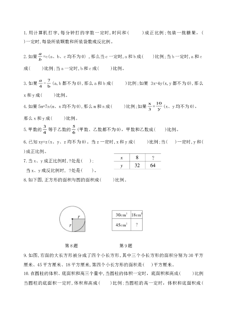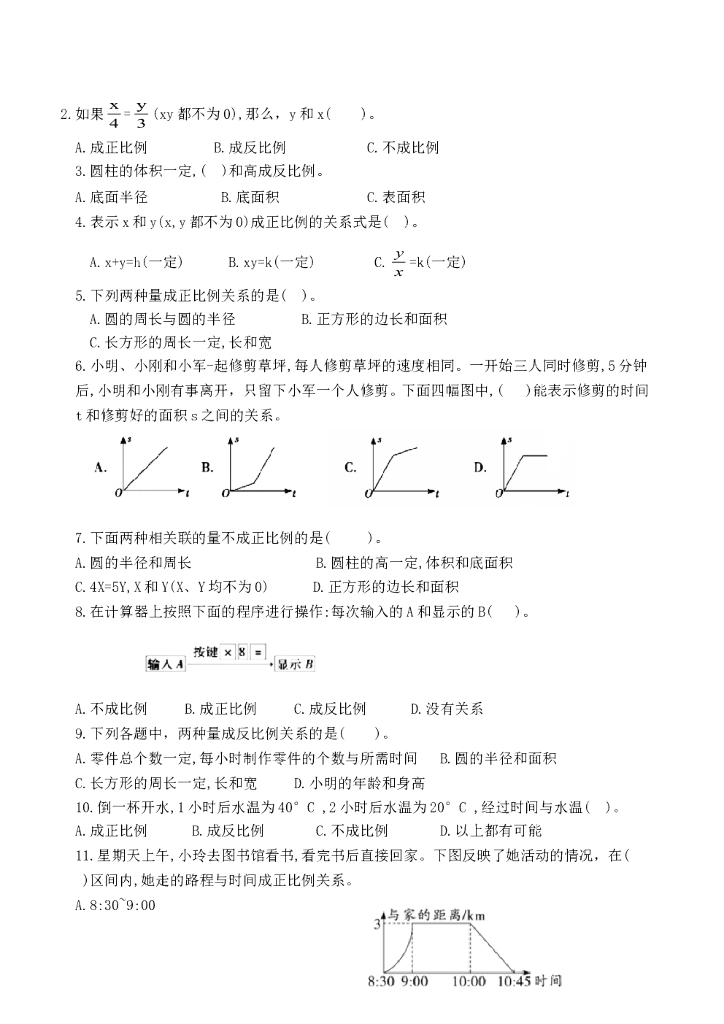 苏教版数学六年级下册第六单元《正比例和反比例》学习力提升练习卷(含答案).doc
