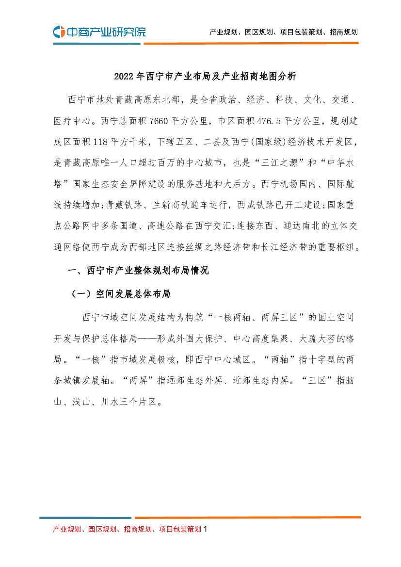 2022年西宁市产业布局及产业招商地图分析.pdf