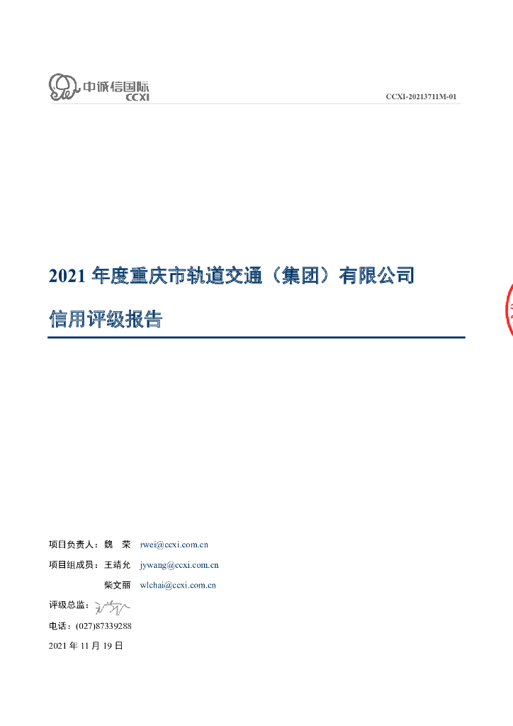 中诚信:重庆市轨道交通(集团)有限公司主体信用评级报告及跟踪评级安排.pdf