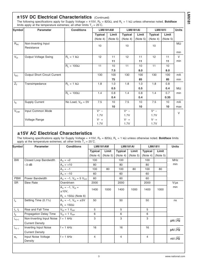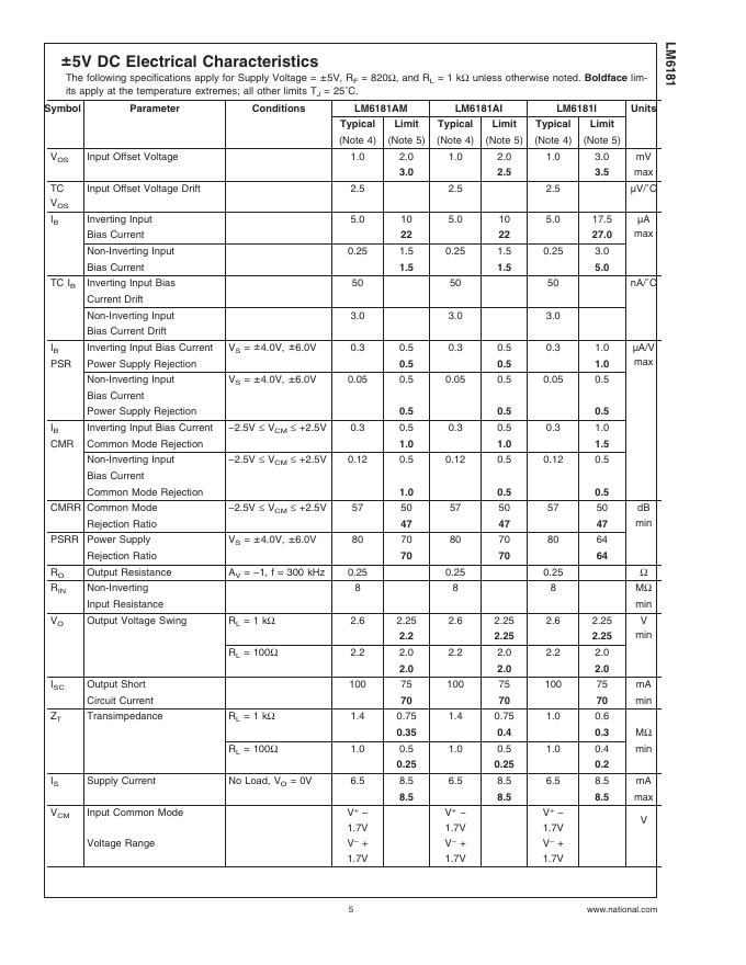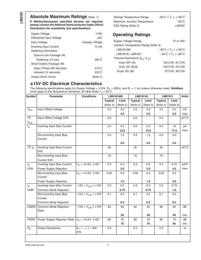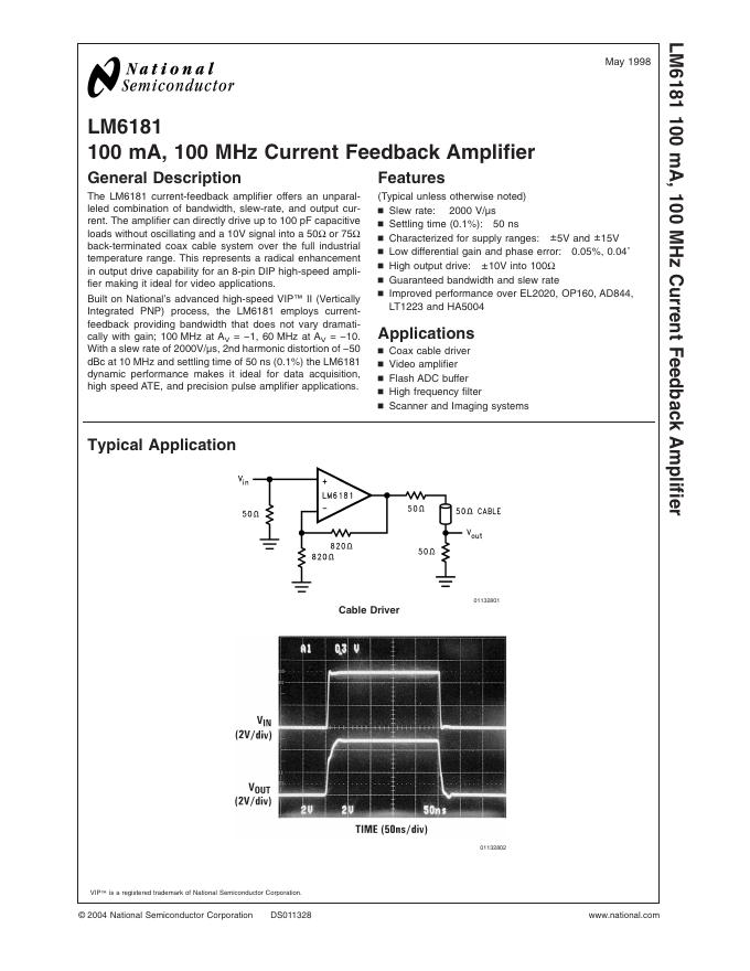 NATIONAL SEMICONDUCTOR - LM6181 100 mA, 100 MHz Current Feedback Amplifier 数据手册.pdf