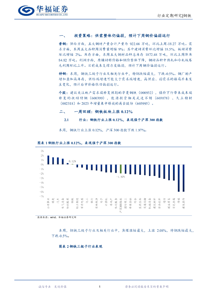 华福证券:钢铁行业周报:供需整体仍偏弱,预计下周钢价偏弱运行.pdf