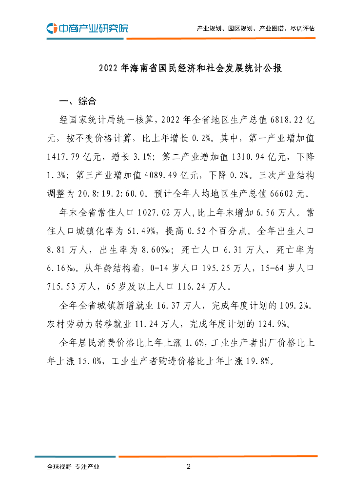 中商产业研究院:2022年海南省国民经济和社会发展统计公报.pdf