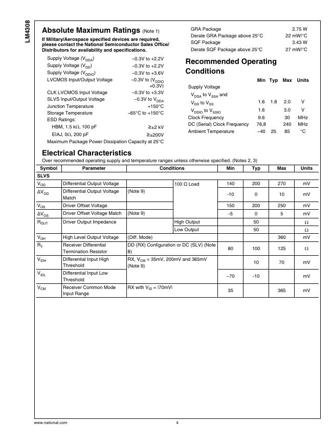 NATIONAL SEMICONDUCTOR - May 27, 2008 DS15BA101 1.5 Gbps Differential Buffer with Adjustable Output Voltage General 说明书