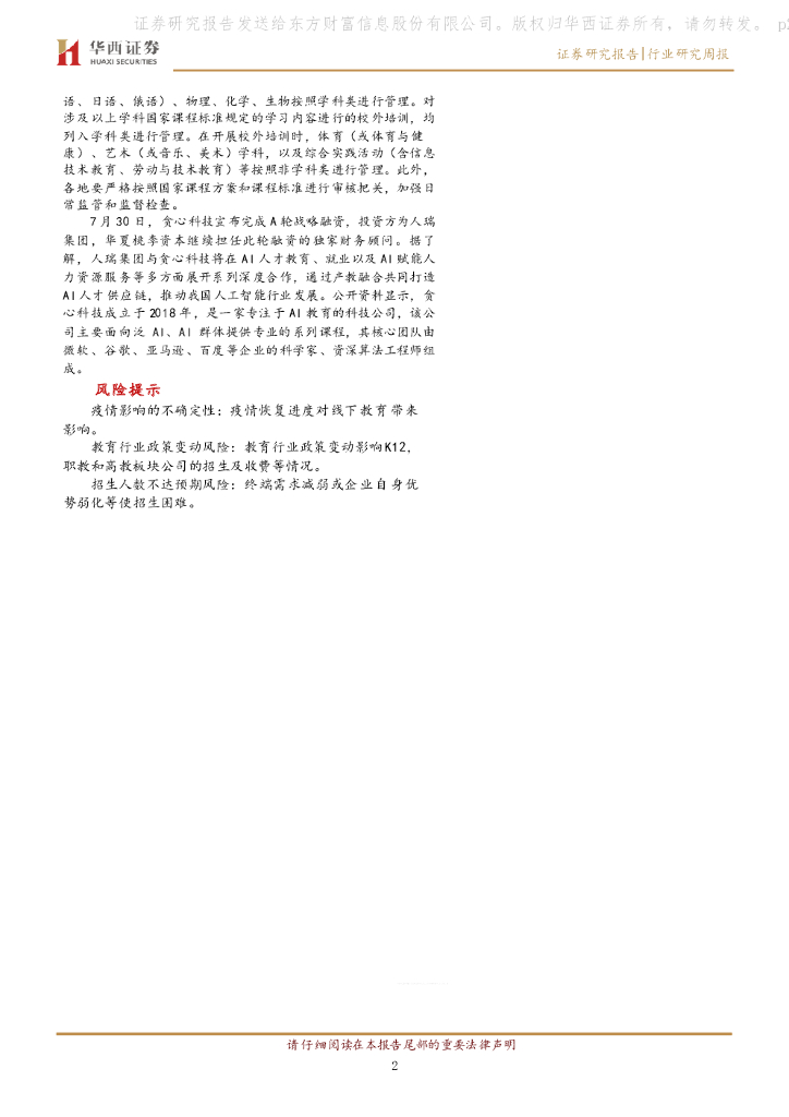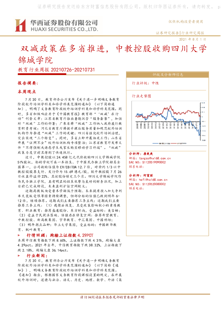 华西证券:教育行业周报:双减政策在多省推进,中教控股收购四川大学锦城学院.pdf