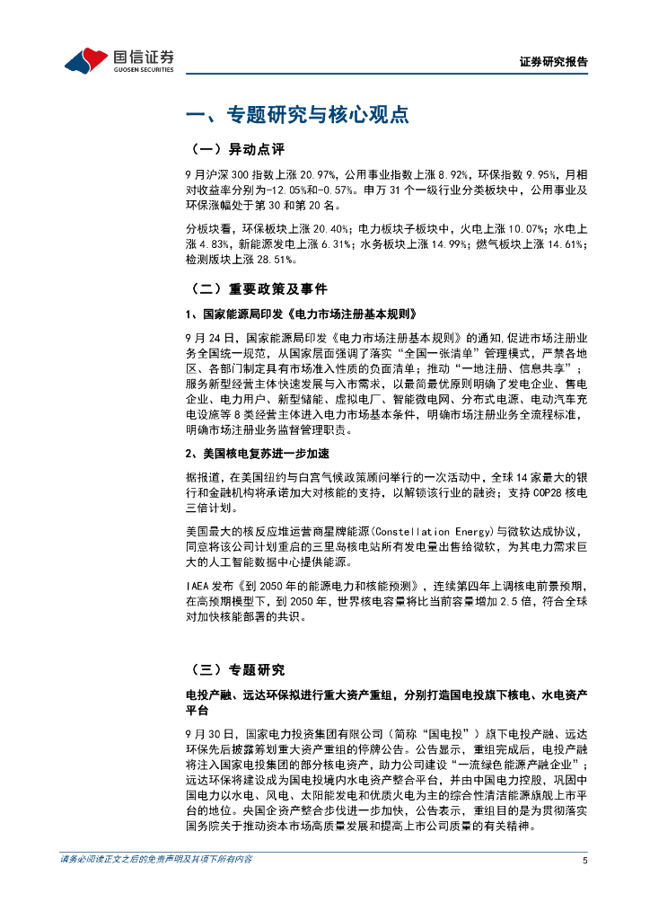 国信证券:公用环保2024年10月投资策略:国家电投打造水电、核电上市平台,全球核电发展继续加速.pdf