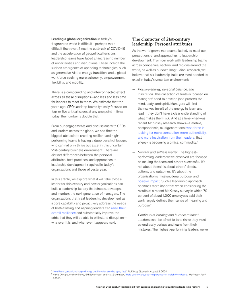 麦肯锡:2024年21世纪领导力的艺术:从继任计划到建立领导力工厂报告(英文版).pdf