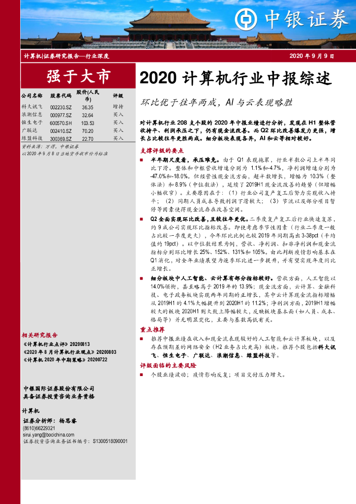 中银证券:2020计算机行业中报综述:环比优于往年两成,AI与云表现略胜.pdf