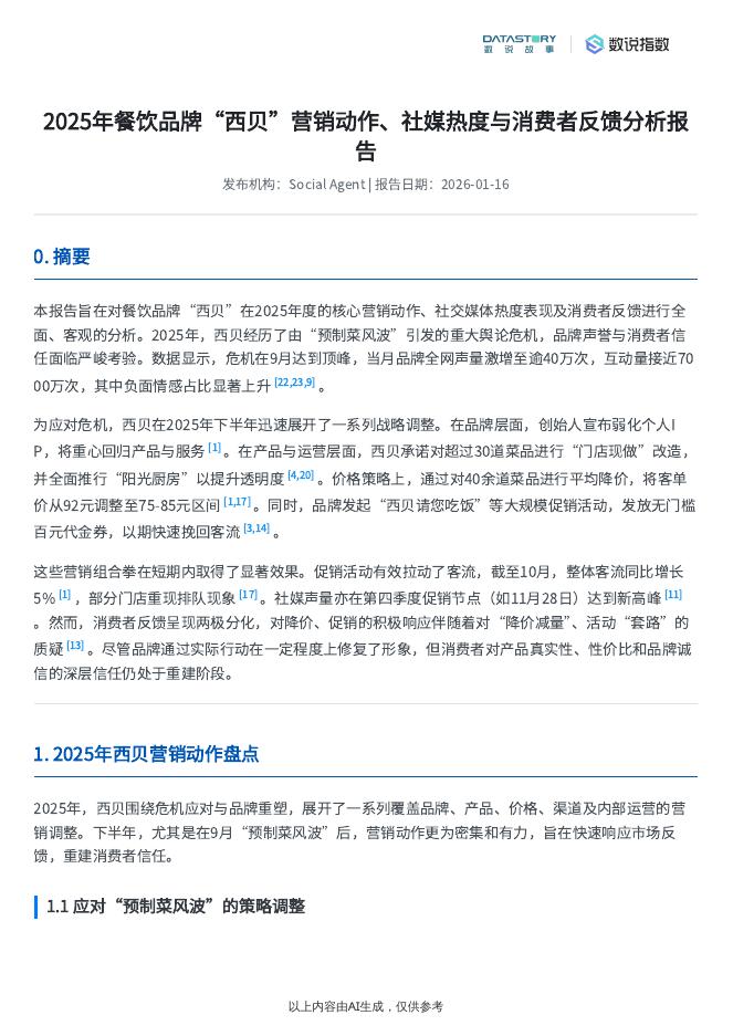 数说故事:西贝2025年营销动作、社媒热度及消费者反馈分析报告.pdf