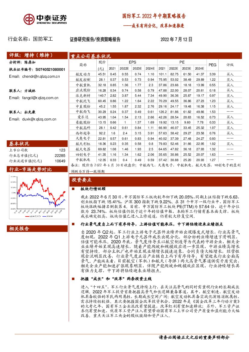 中泰证券:国防军工2022年中期策略报告:成长有所分化,改革加速推进.pdf