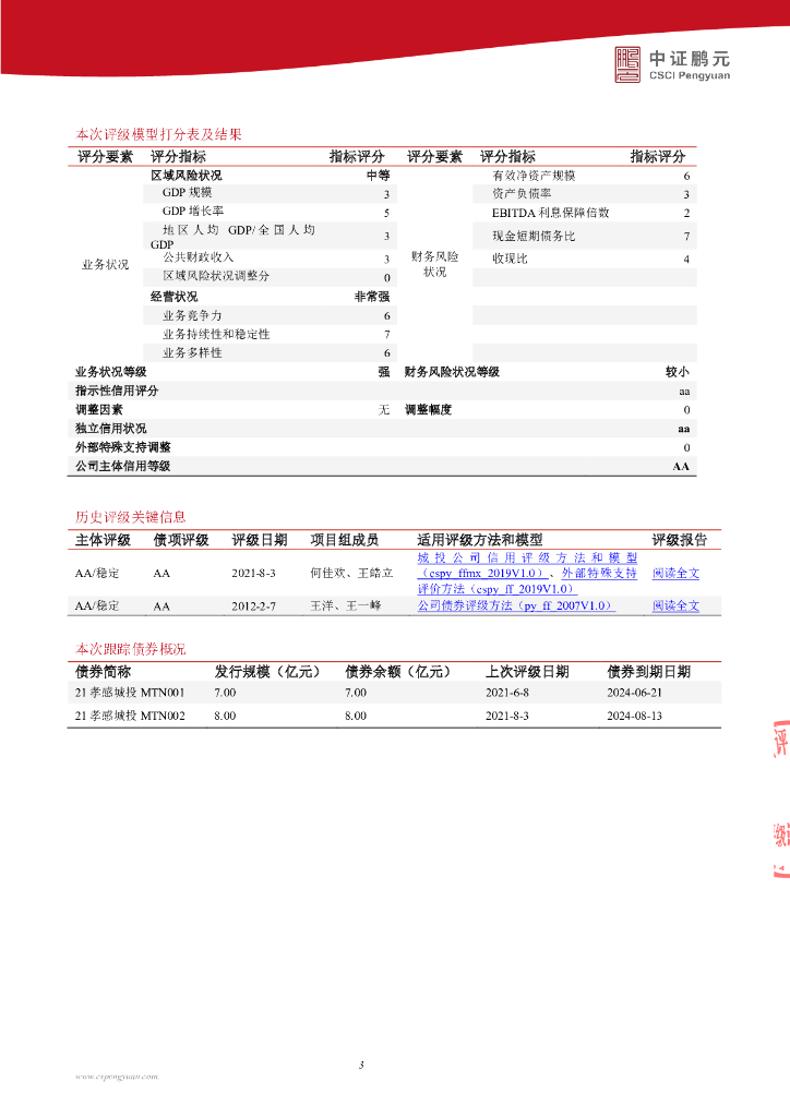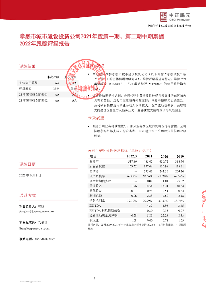 鹏元:孝感市城市建设投资公司2021年度第一期、第二期中期票据2022年跟踪评级报告.pdf