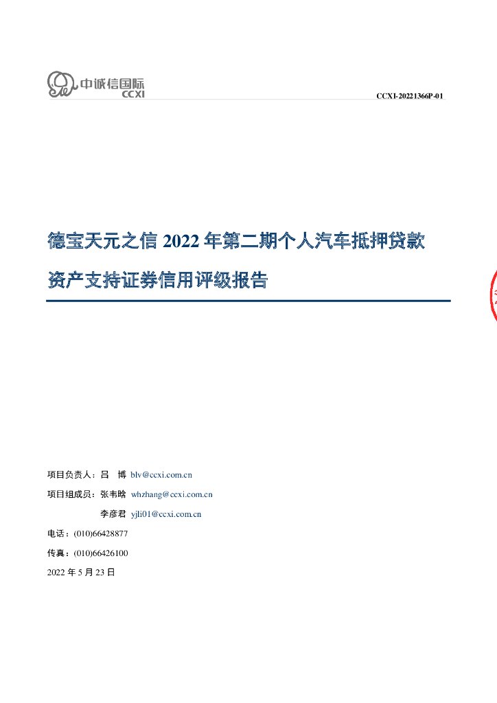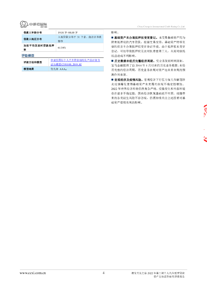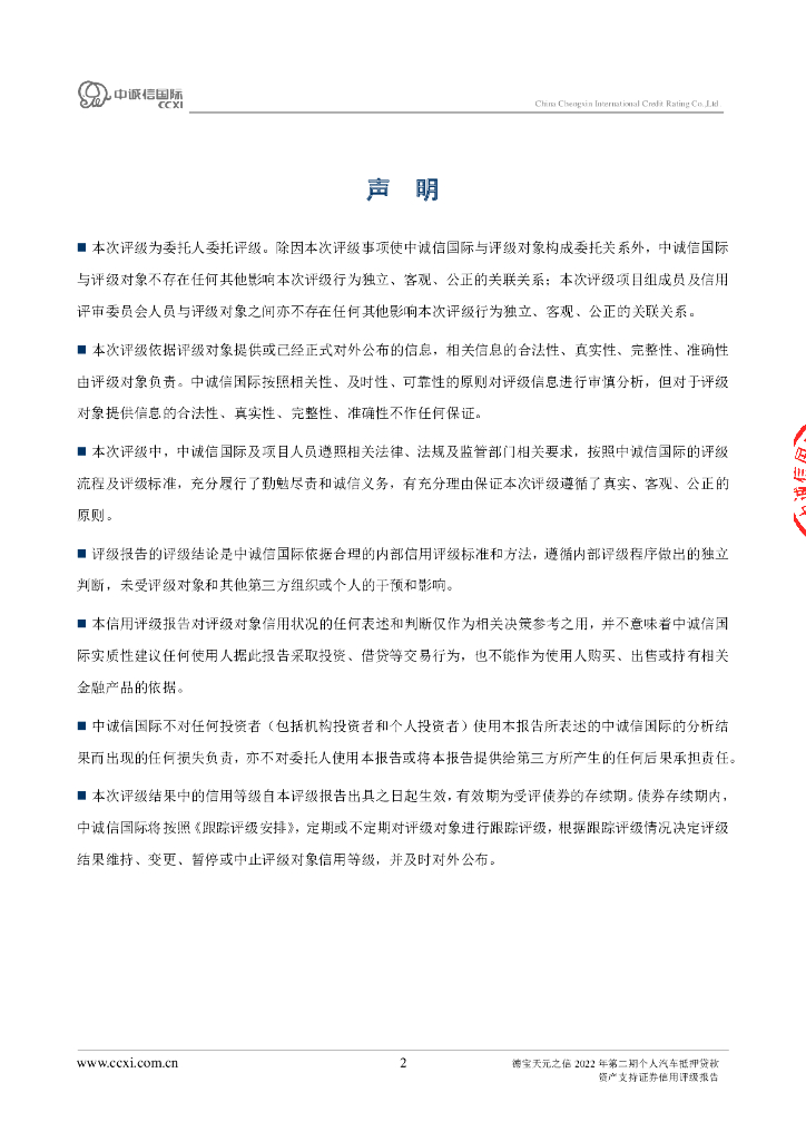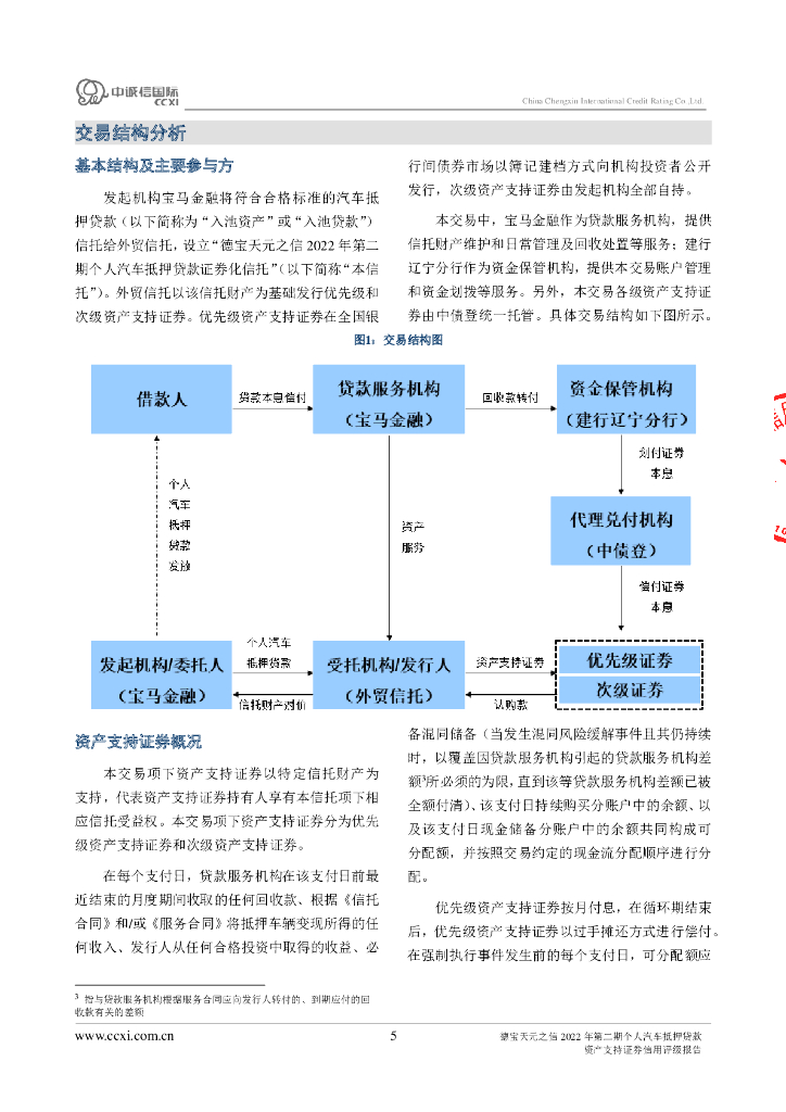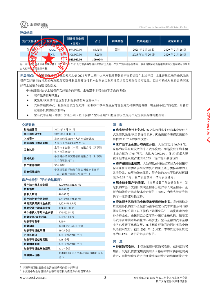 中诚信:德宝天元之信2022年第二期个人汽车抵押贷款资产支持证券评级报告及跟踪评级安排说明.pdf