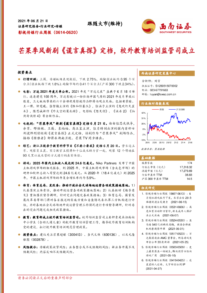 西南证券:影视传媒行业周报:芒果季风新剧《谎言真探》定档,校外教育培训监管司成立.pdf