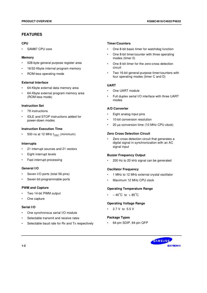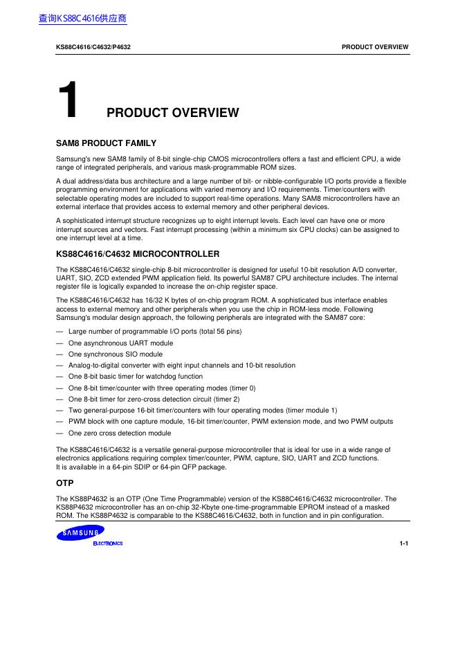 SAMSUNG Electronics KS88C4616/C4632/P4632 数据手册.pdf