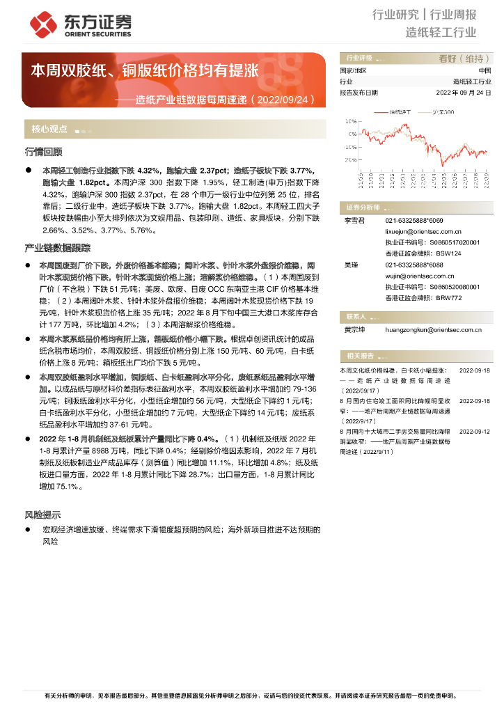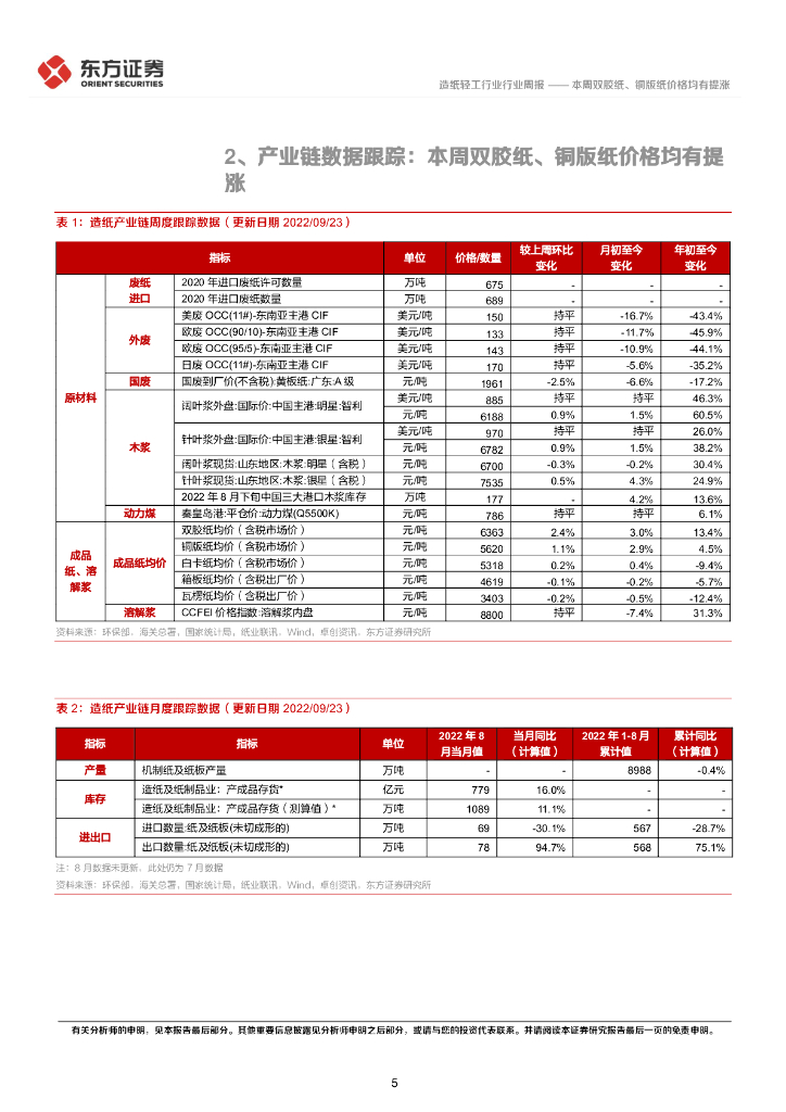 东方证券:造纸产业链数据每周速递:本周双胶纸、铜版纸价格均有提涨.pdf