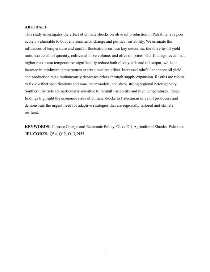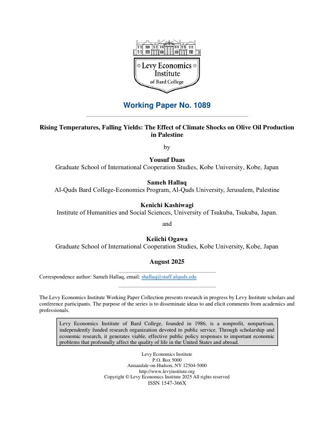巴德学院利维经济研究所:气温上升,产量下降:气候冲击对巴勒斯坦橄榄油生产的影响(英文版).pdf