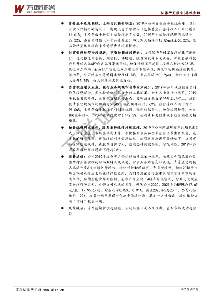 万联证券:国泰君安(601211)-2019年年报点评:稳居第一梯队,财富管理和资管转型有成效.pdf