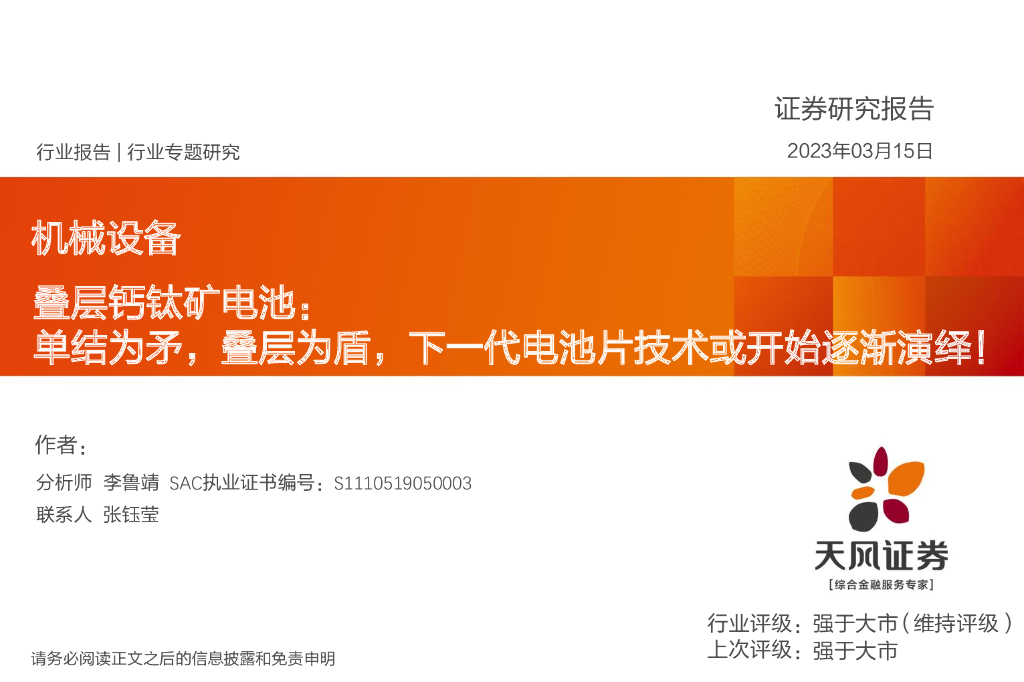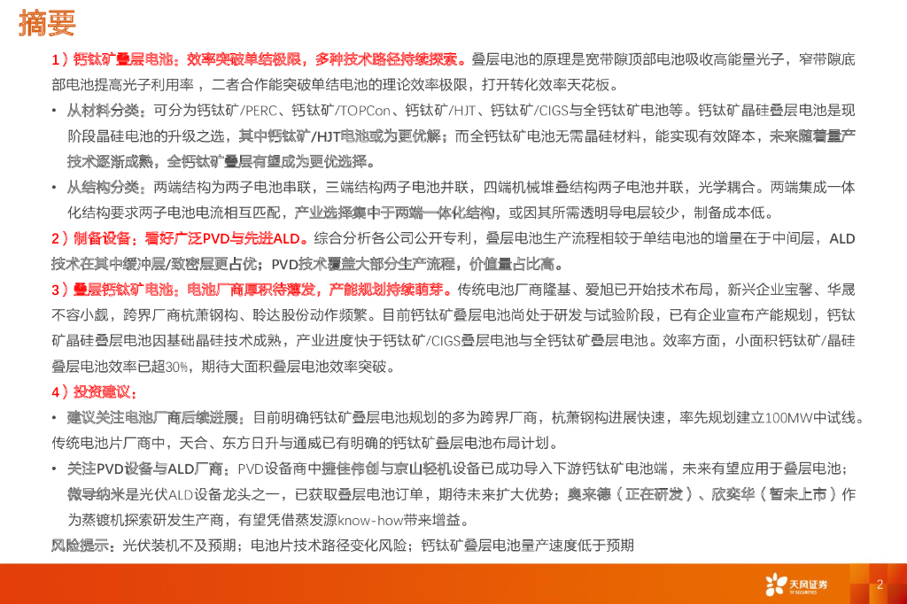 天风证券:叠层钙钛矿电池:单结为矛,叠层为盾,下一代电池片技术或开始逐渐演绎!.pdf