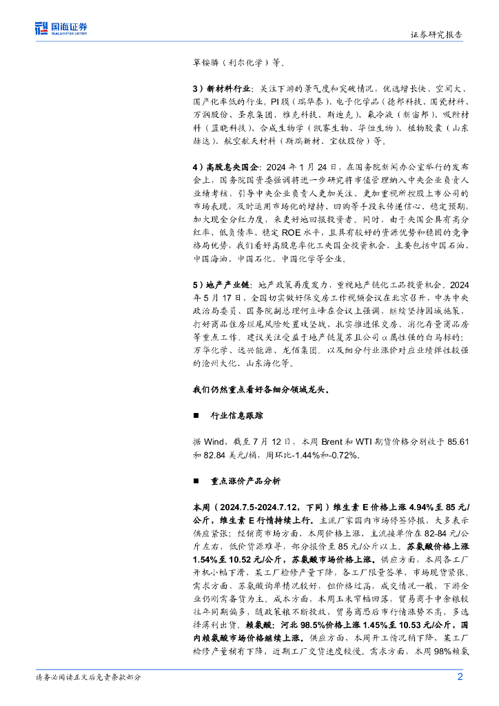 国海证券:基础化工行业周报:维生素E、氨基酸价格上涨,多家轮胎企业上半年业绩预增.pdf