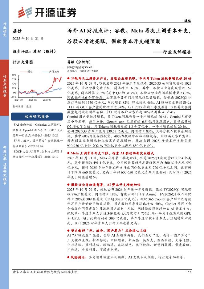 开源证券:通信行业点评报告:海外AI财报点评:谷歌、Meta再次上调资本开支,谷歌云增速亮眼,微软资本开支超预期.pdf
