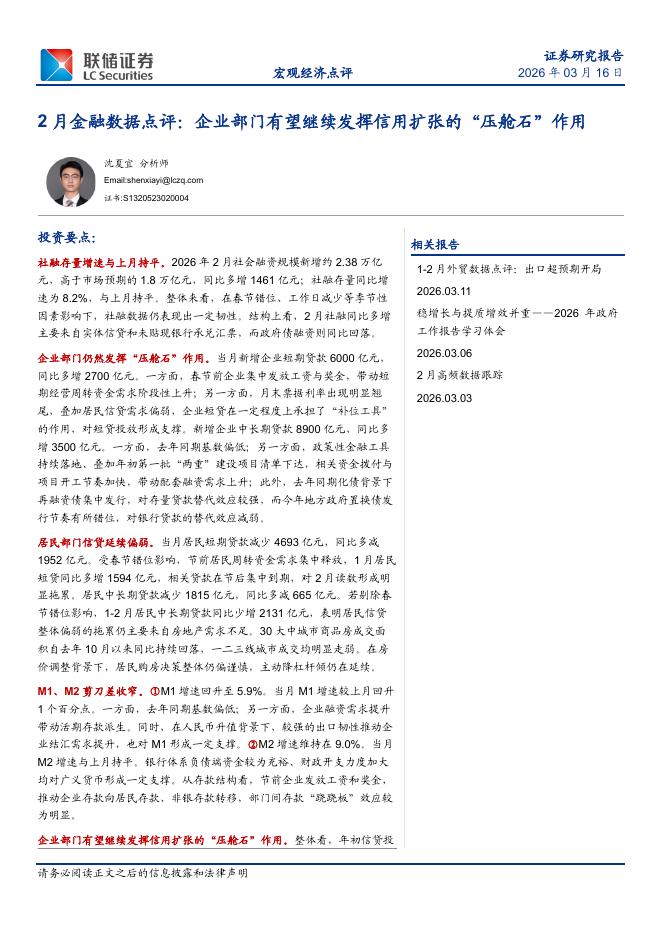 联储证券:2月金融数据点评:企业部门有望继续发挥信用扩张的“压舱石”作用-260318.pdf