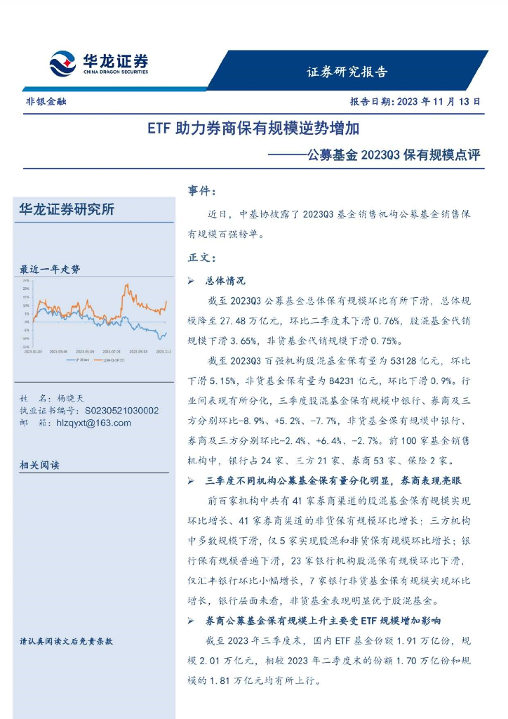 华龙证券:公募基金2023Q3保有规模点评:ETF助力券商保有规模逆势增加.pdf