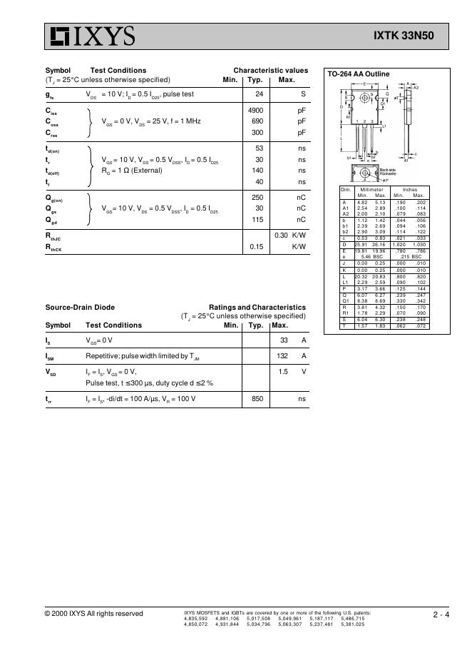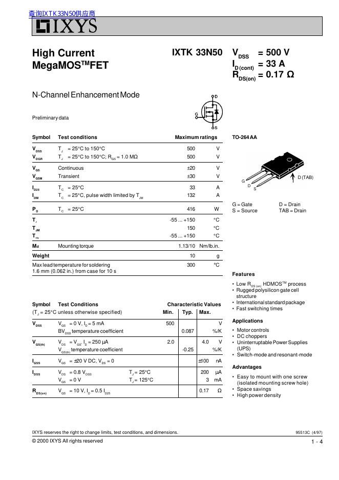 IXYS IXTK 33N50 数据手册.pdf