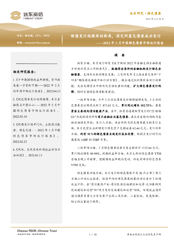 远东资信:绿债发行规模再创新高,深交所蓝色债券成功发行——2022年3月中国绿色债券市场运行报告.pdf