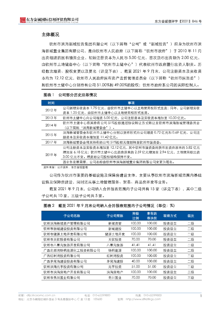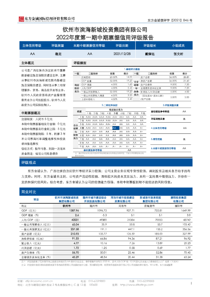 东方金诚:钦州市滨海新城投资集团有限公司2022年度第一期中期票据信用评级报告.pdf