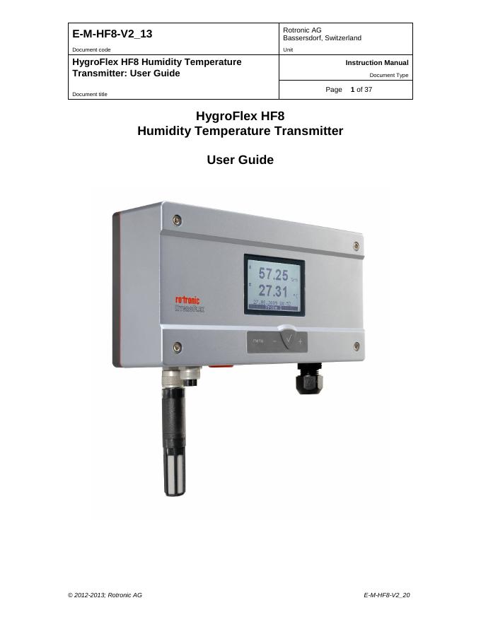 Rotronic HygroFlex HF8湿度温度传感器用户指南.pdf