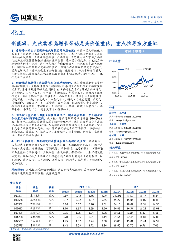 国盛证券:化工行业周报:新能源、光伏需求高增长带动龙头价值重估,重点推荐东方盛虹.pdf