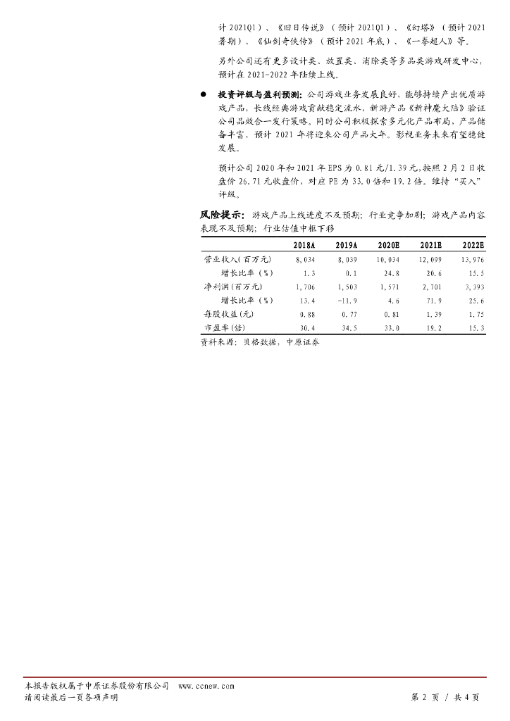 中原证券:完美世界(002624)-公司点评报告:游戏业务净利润增长20%,2021公司有望迎来产品大年.pdf