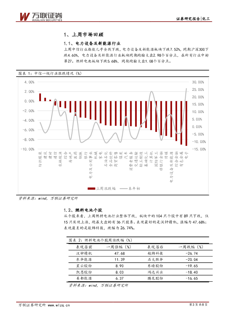 万联证券:燃料电池行业周观点:国内外政策频出,但受全球疫情影响板块回落.pdf