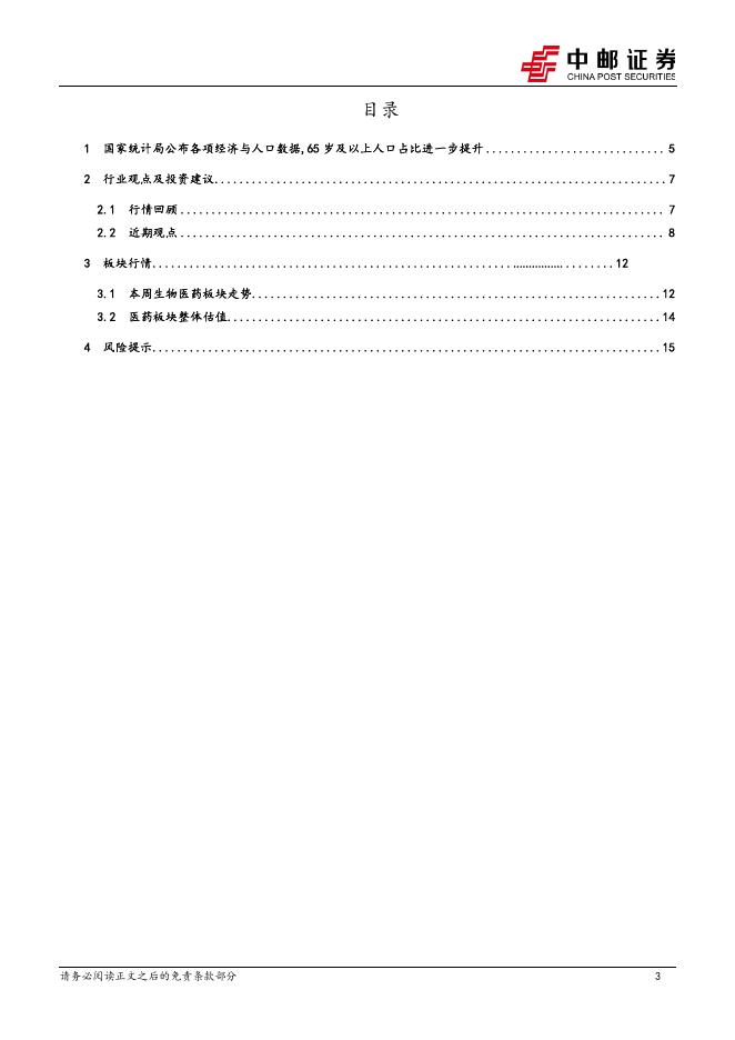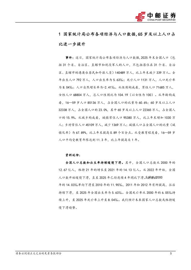 中邮证券:医药生物行业:国家统计局公布各项经济与人口数据,65岁及以上人口占比进一步提升.pdf