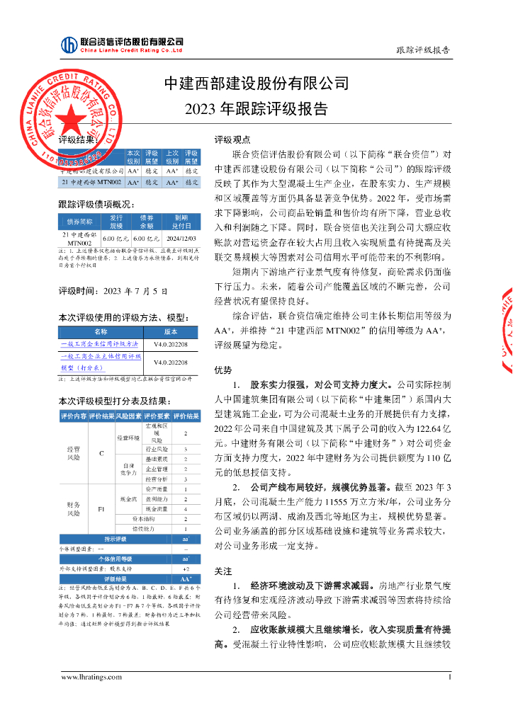 联合资信:中建西部建设股份有限公司2023年跟踪评级报告.pdf