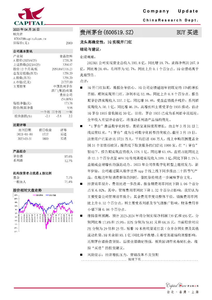 群益证券:贵州茅台(600519)-龙头高确定性,1Q实现开门红.pdf