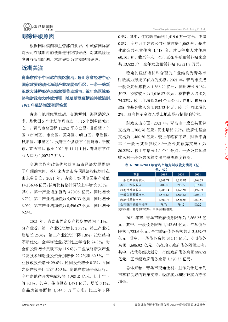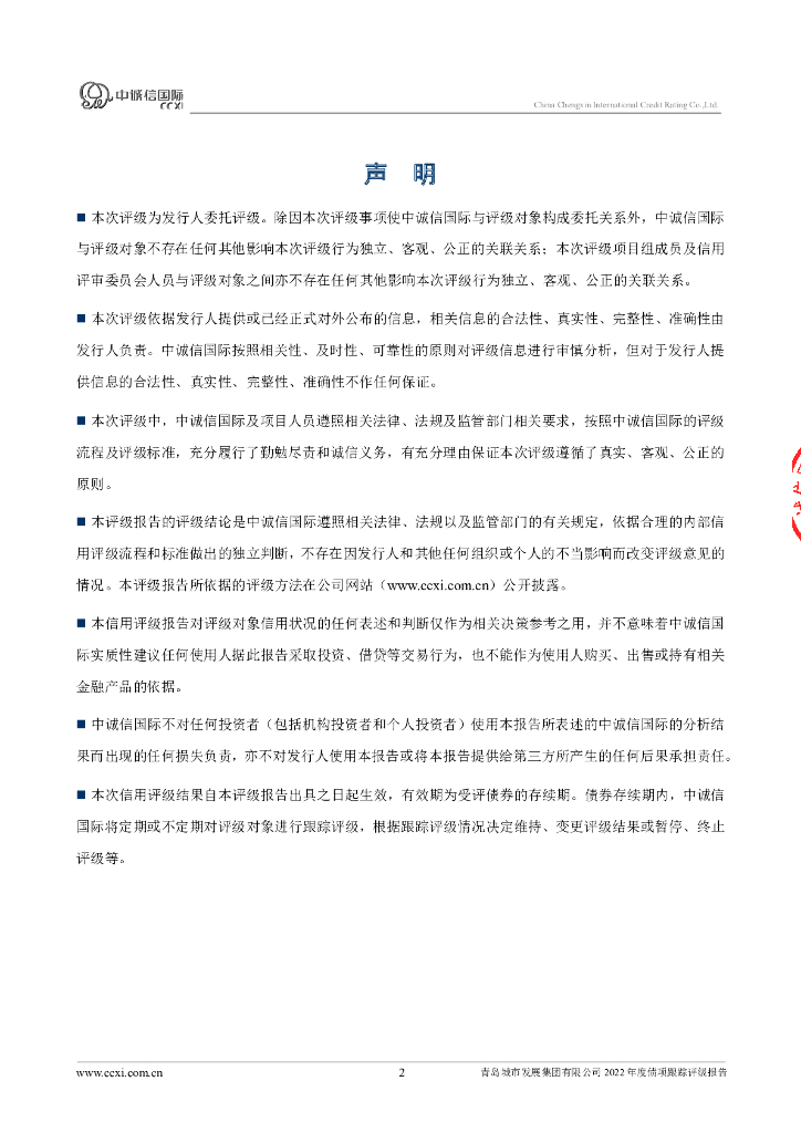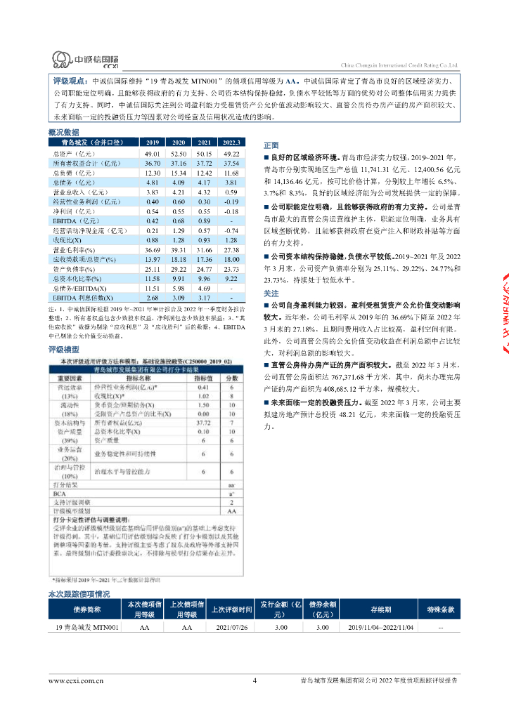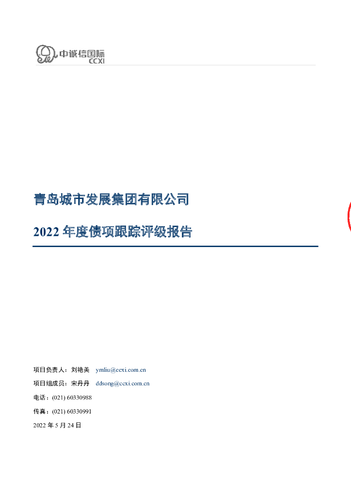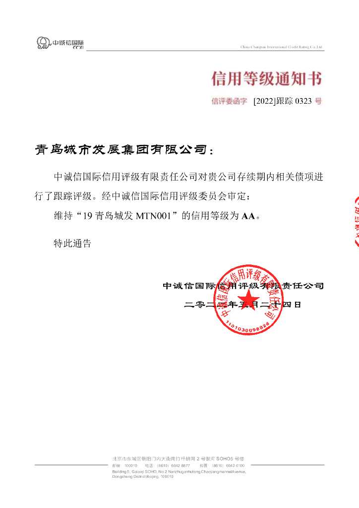 中诚信:青岛城市发展集团有限公司2022年度债项跟踪评级报告.pdf