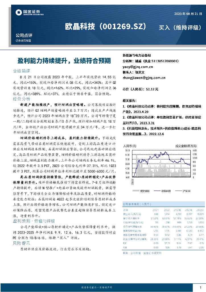 国金证券:欧晶科技(001269)-盈利能力持续提升,业绩符合预期.pdf