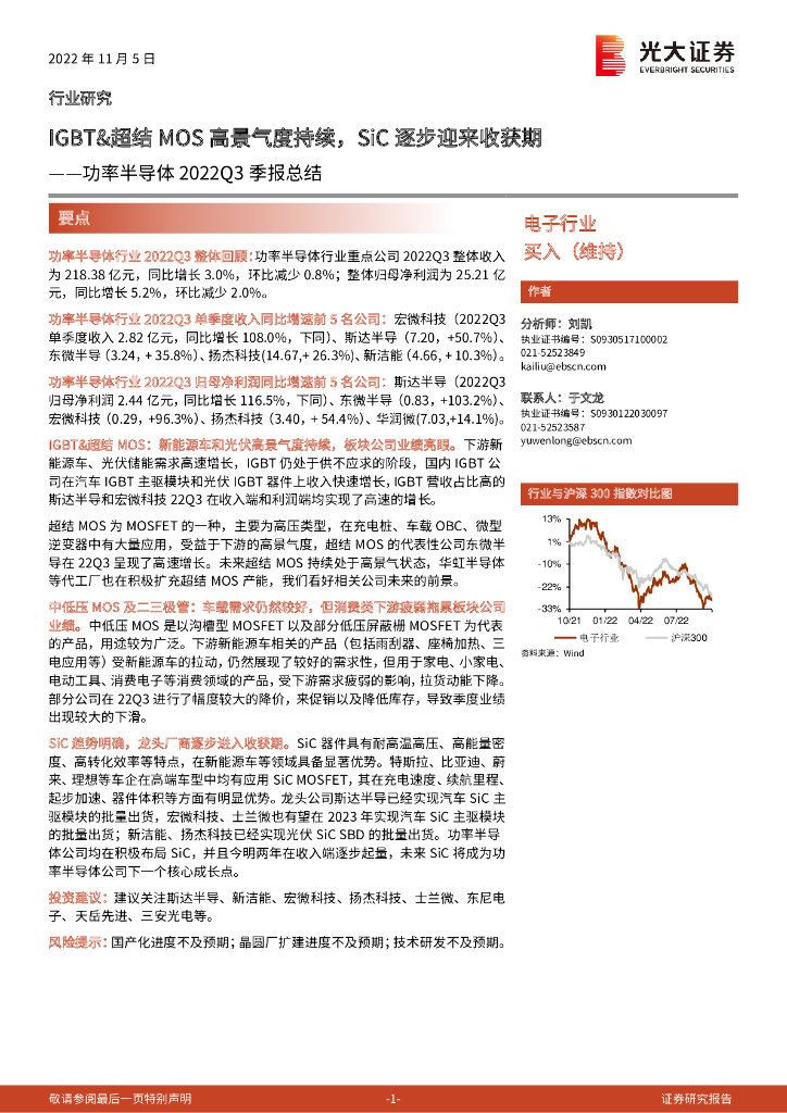 光大证券:功率半导体2022Q3季报总结:IGBT&超结MOS高景气度持续,SiC逐步迎来收获期.pdf