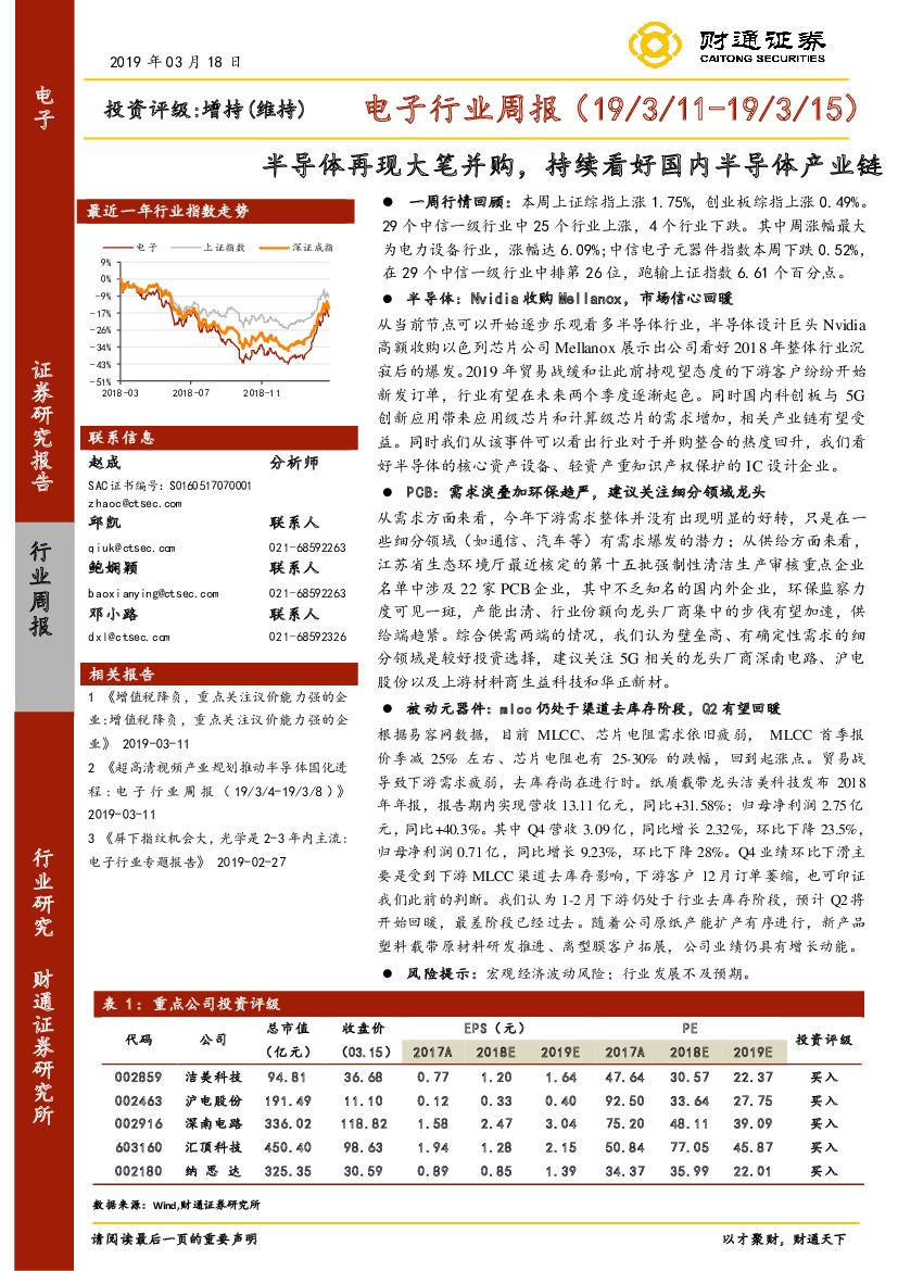 财通证券:电子行业周报:半导体再现大笔并购,持续看好国内半导体产业链.pdf
