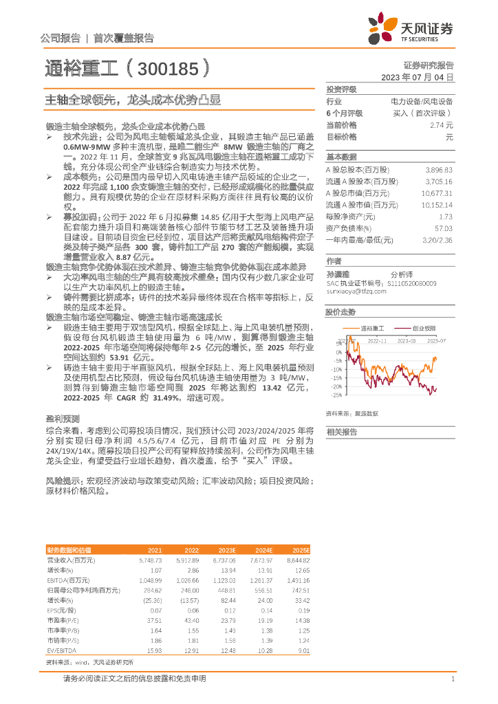 天风证券:通裕重工(300185)-主轴全球领先,龙头成本优势凸显.pdf